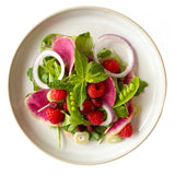 La Vinaigrette Canneberge et Framboise marie avec finesse l’acidité vive de la canneberge, la douceur fruitée de la framboise et une base parfaitement équilibrée pour créer une explosion de saveurs à la fois fraîche et délicate.